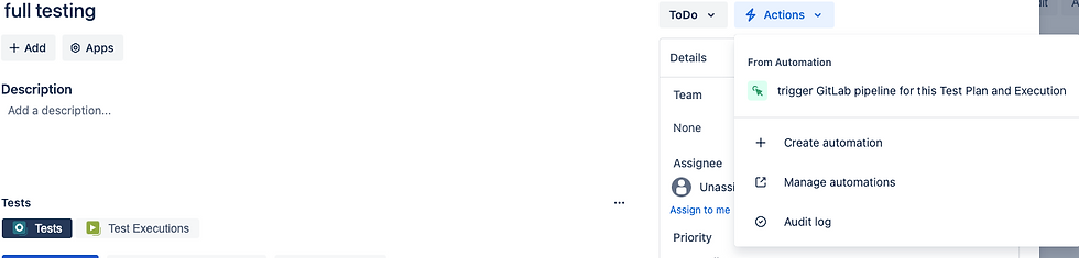 To trigger this Go to > Jira Testing Board > Test Plan > Edit > Actions > (title of your automation task)